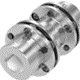 滾子式聯(lián)軸器由具有同樣齒形的齒圈和軸套組成。將一系列硬化鋼的圓柱形滾子插入由此軸套和齒圈形成的孔中并齒接,以用作動力傳動組件。